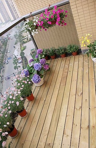 在家中有限的空間里,選擇安裝防腐木陽臺,在地下鋪裝一層防腐木地板,同樣是一種不錯的選擇。尤其對于種植園藝愛好者來說,在陽臺的區域鋪裝上防腐木地板,不僅能讓生硬乏味的陽臺變得有活力,而種植的花卉與木地板的結合,能將陽臺整個格調提升一個檔次。