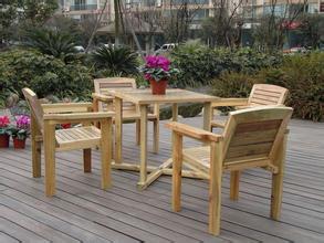 防腐木桌椅具有耐腐蝕、防蟲蛀、抗日曬和雨淋的特性,很適合在戶外使用。并可以用于酒店、園林、茶樓、專賣店、古典裝潢等處所的室內外裝潢。表面光滑,但不光澤不亮,有一種古典高貴的感覺。木材一般選用經過防腐處理的樟子松,經過標準的防腐處理后安裝在預定區域,然后涂刷上戶外木材專用耐候木油以達到更好的防腐目的。